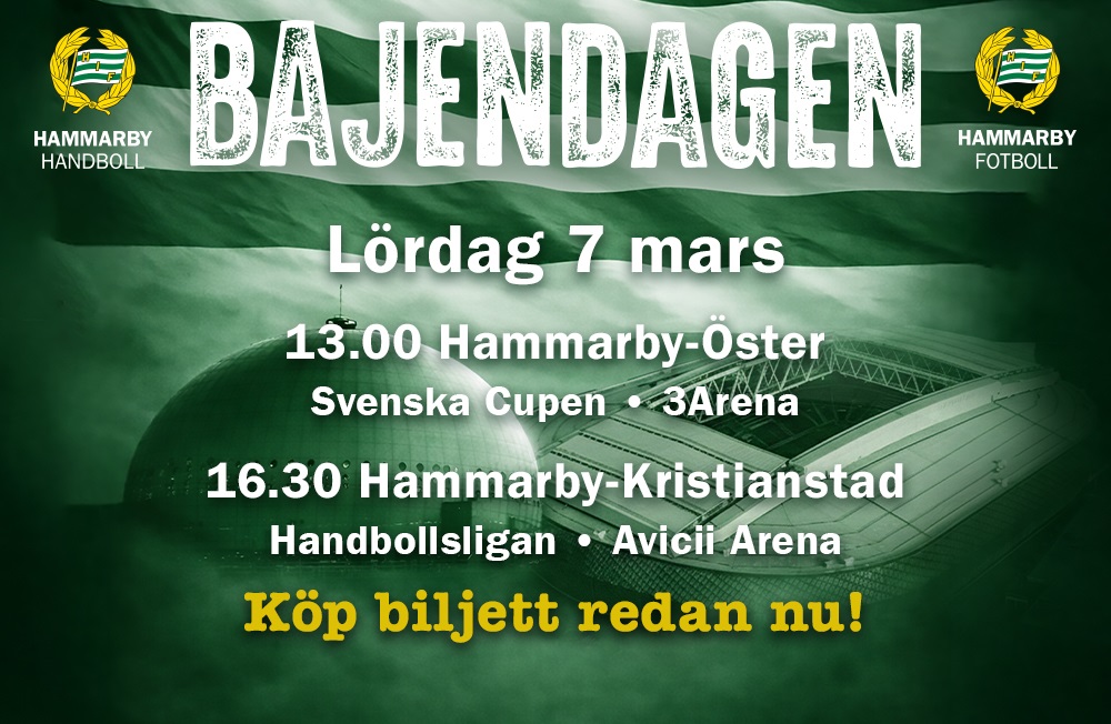 Ungefär tre veckor återstår till Bajendagen med både cupfotboll och handboll.Nu har fler alliansföreningar och supportergäng meddelat närvaro! KÖP BILJETTER TILL AVICII ARENA LÖ 7/3 HÄR!Lördag 7 mars blir grönvit för hel (...)